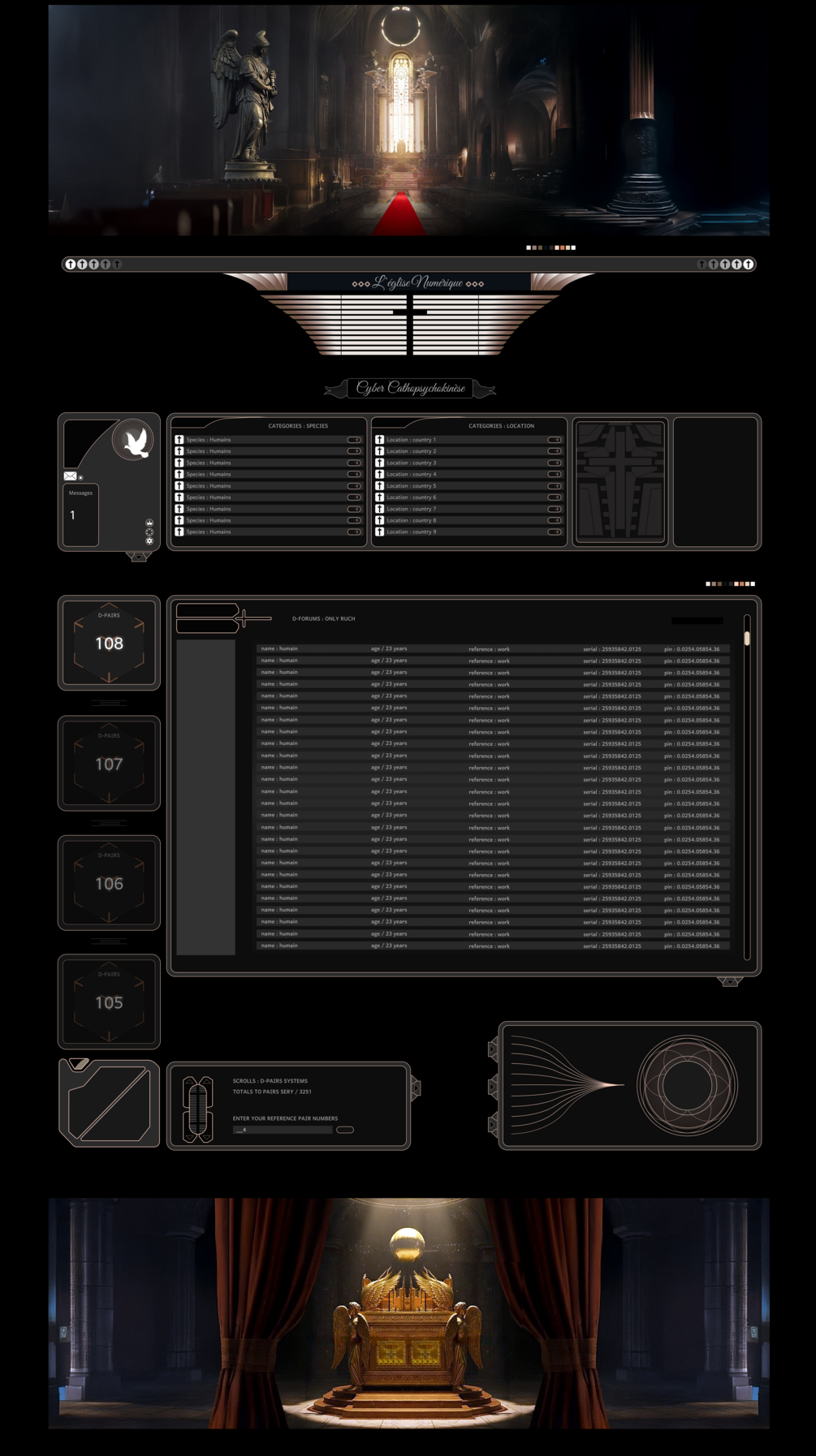 - UI symbolique et épurée, inspirée des codes de l’art religieux et du cyberpunk